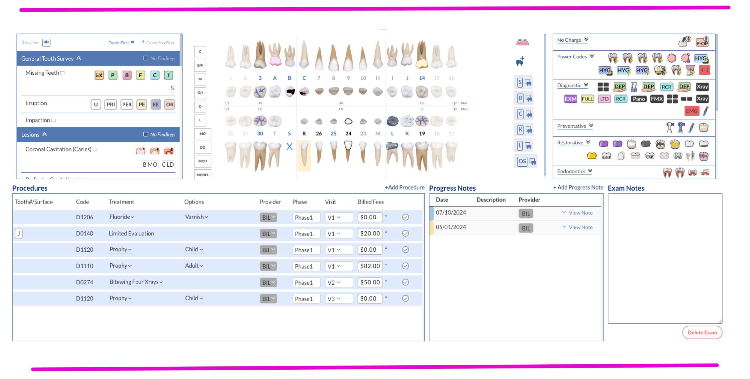 In Oryx, exam findings flow directly into progress notes, and automated narrative generation turns that data into complete, payer-ready documentation. Voice-driven perio charting further cuts down on clicks. The net effect is simple: notes get finished the same day with less mental load on the provider.